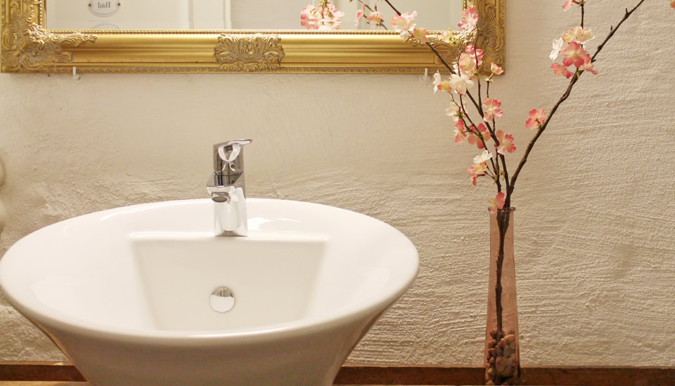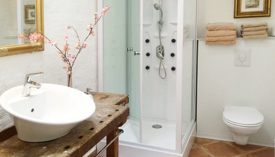 das Bad ist von den beiden Schlafzimmern aus unabhängig zu erreichen.