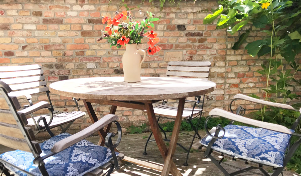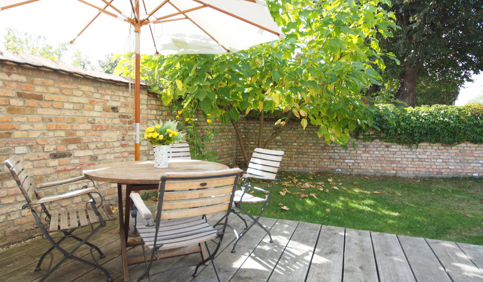 Charmantes Gartenhaus im Landhaus-Stil in Caputh. Ruhig, wassernah, in Schlossnähe. Fünf Räume, zwei Schlafzimmer, ca. 75 qm, Terrasse & Gartenteil, für 1-3 Personen, WLAN.