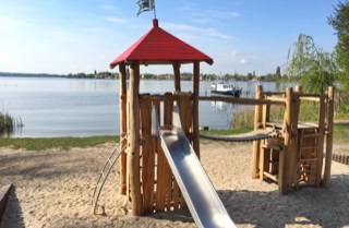 Seeufer mit Anleger und Badestelle ca. 350 m. Gepflegte Radwege nach Potsdam, Sanssouci und Werder. Nutzen Sie von hier aus die Bahnverbindung nach Berlin.