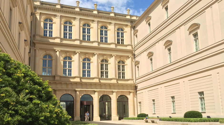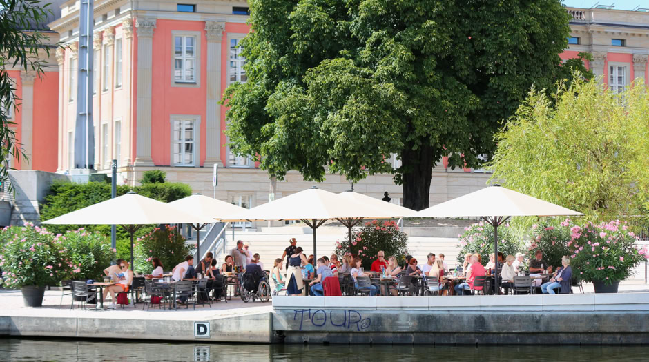 Rund ums Postsdamer Stadtschloss und Nikolaikirche entstehen die Bauten nach originalem Vorbild, wie z.B. der Palazzo Barberini. Von hier verkehren auch die Fahrgastschiffe der Weissen Flotte und das Wassertaxi.