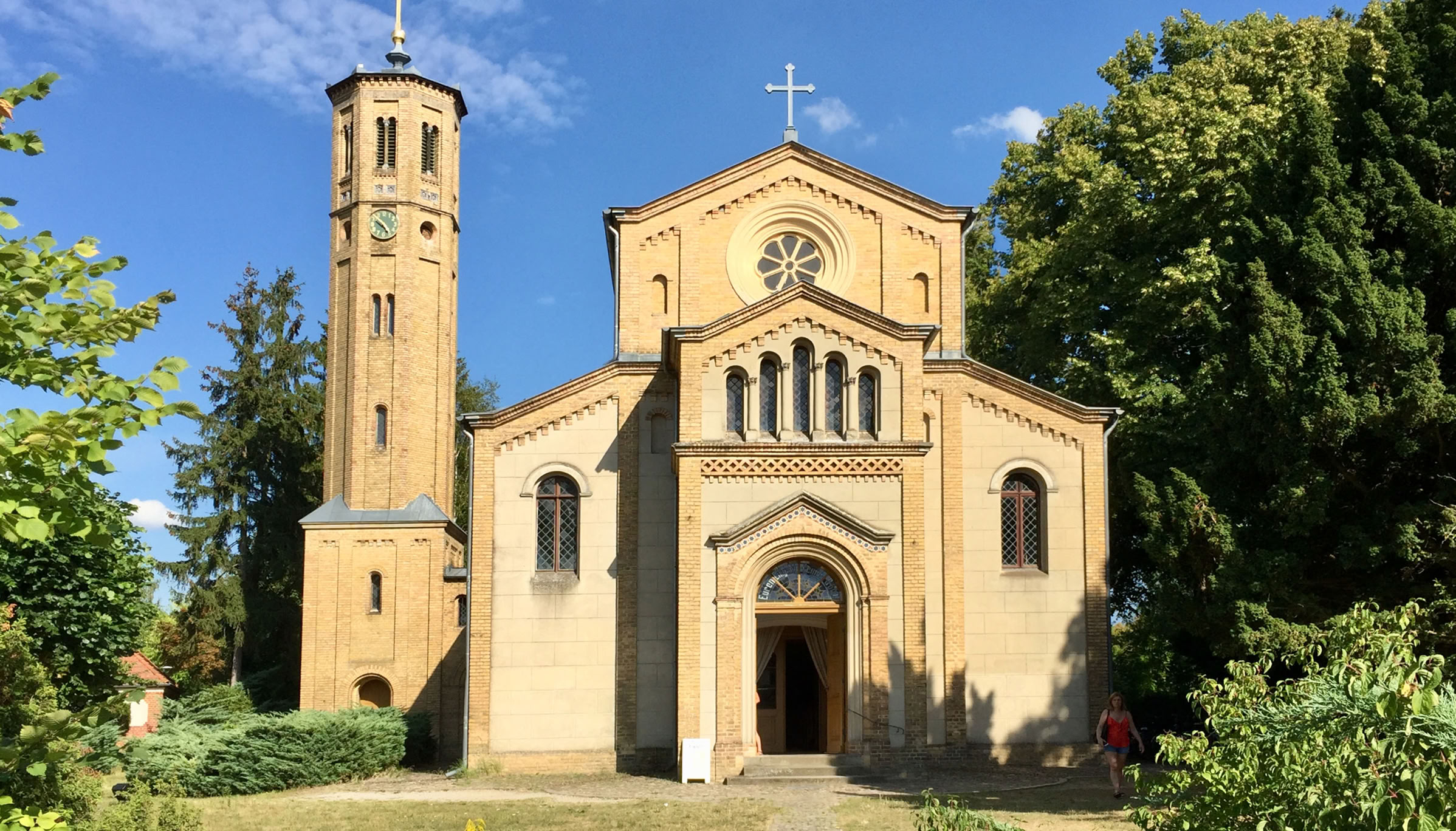 im romantisierenden norditalienischen Stil als Basilika mit freistehendem Campanile. Gebaut im Auftrag des preussischen Königs Friedrich Wilhelm IV. von Hofarchitekt Friedrich A. Stüler.