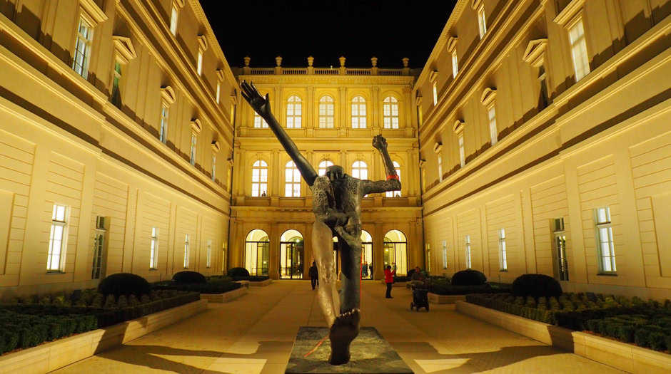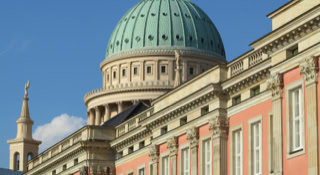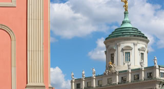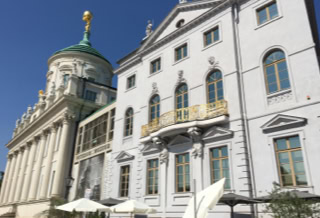 Rund ums Postsdamer Stadtschloss und Nikolaikirche entstehen die Bauten nach originalem Vorbild, wie z.B. der Palazzo Barberini. Von hier verkehren auch die Fahrgastschiffe der Weissen Flotte und das Wassertaxi.
